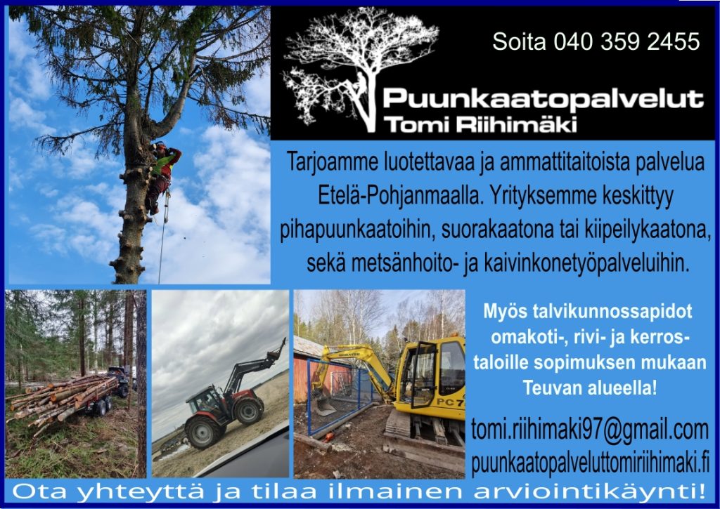 YRITTÄJÄ! Tee sopimus sivustollamme mainostamisesta, 150 €/v (sis.alv). Soita p. 050 4121 120, niin keskustellaan lisää!